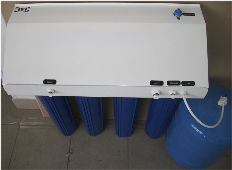 Установка имеет автономные насосы, автоматически поддерживающие уровень очищенной воды в накопительном баке, а так же позволяющие поддерживать производительность при низком давлении в системе подачи воды.